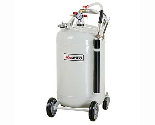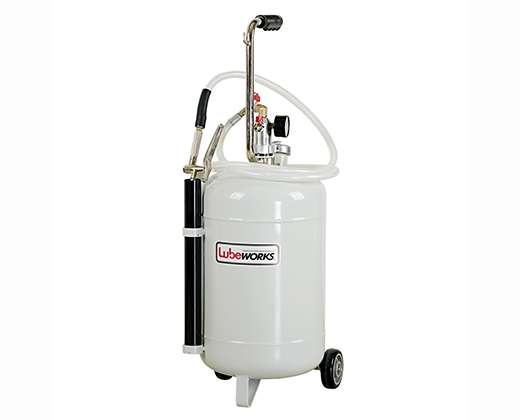 • Pneumatic oil dispenser is equipped with level gauge and delivery gun with flexible end. Suitable for filling or topping-up oil