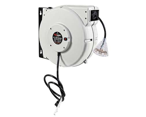Heavy duty industrial cord/cable reel series feature long lengths of heavy gauge cord/cable