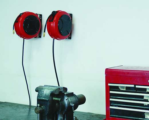 Safely retracts and stops hose