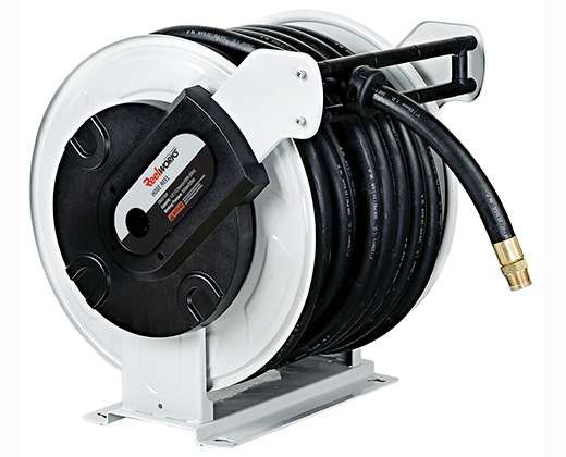 • Medium pressure hose reel are furnished standard with S.A.E.100R1 at one wire braid hose suitable for air, water or oil application in auto and truck maintenance facilities