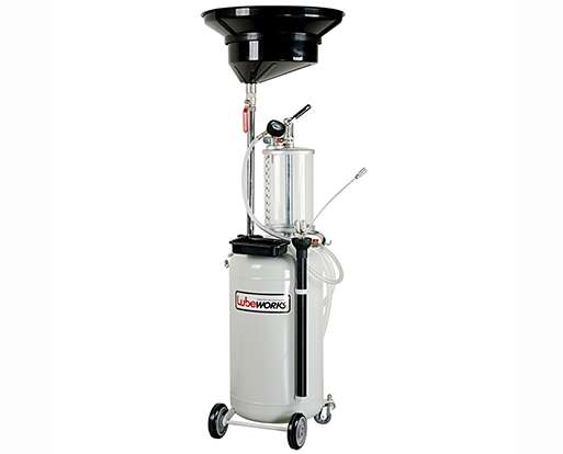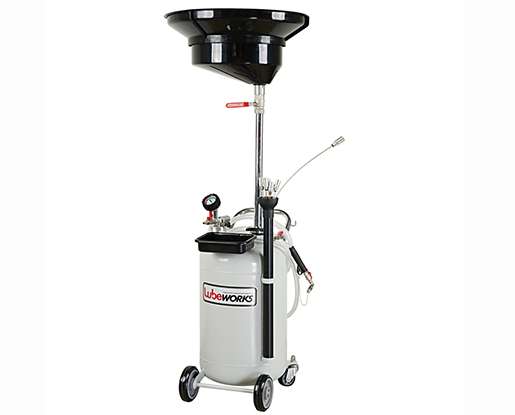 • Air operated oil drainer with center mounted adjustable collecting bowl